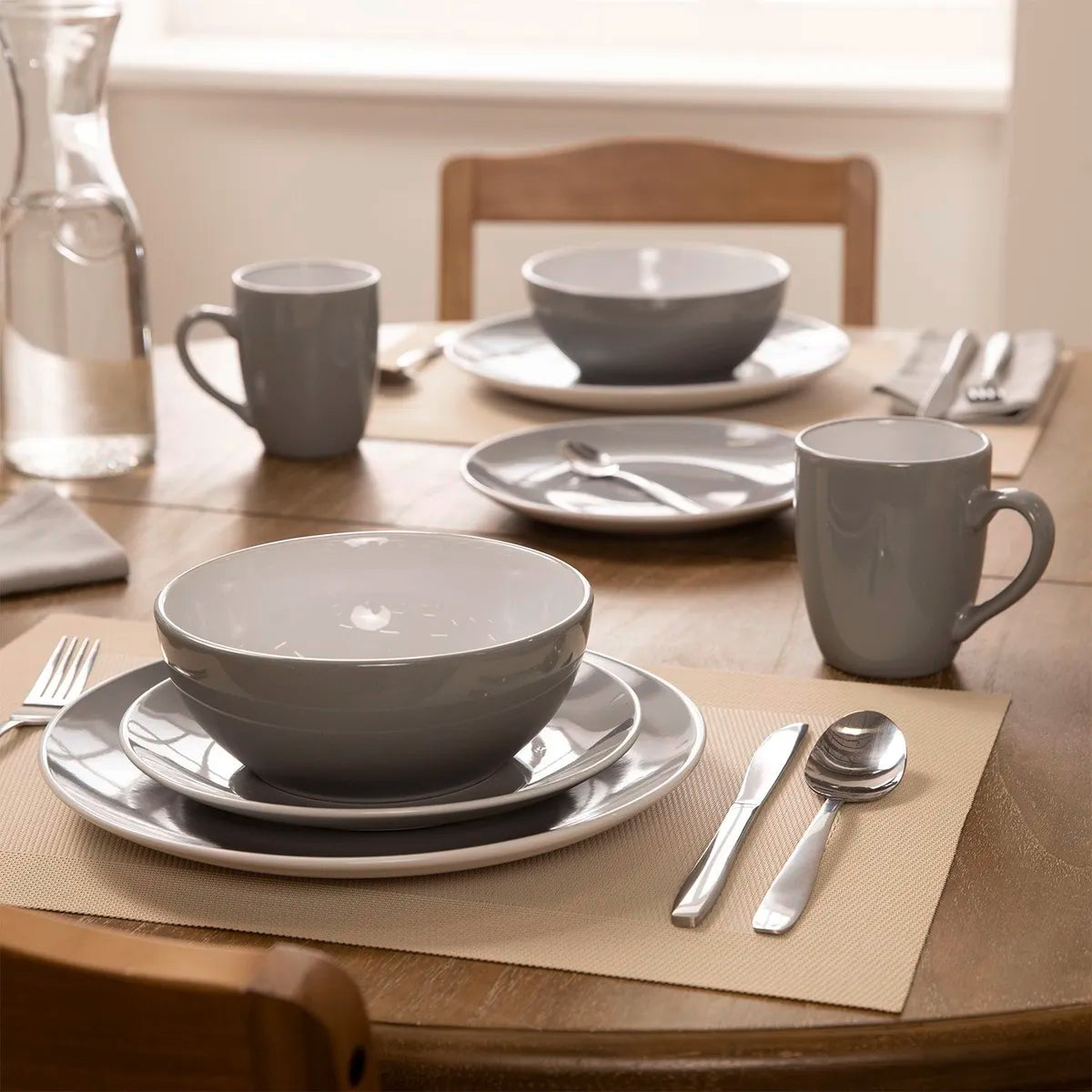 - Incluye 6 platos de fondo (27cm), 6 platos de postre (22cm), 6 bowls de sopa (18cm) y 6 mugs (340ml - 11cm).